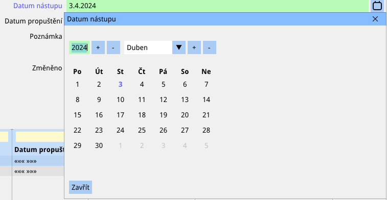 Datum je možné také zvolit výběrem v kalendáři, viz obrázek: