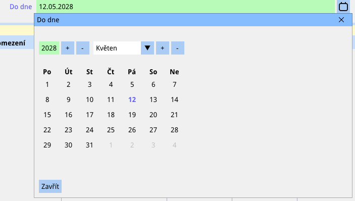 Datum je možné také zvolit výběrem v kalendáři, viz obrázek: