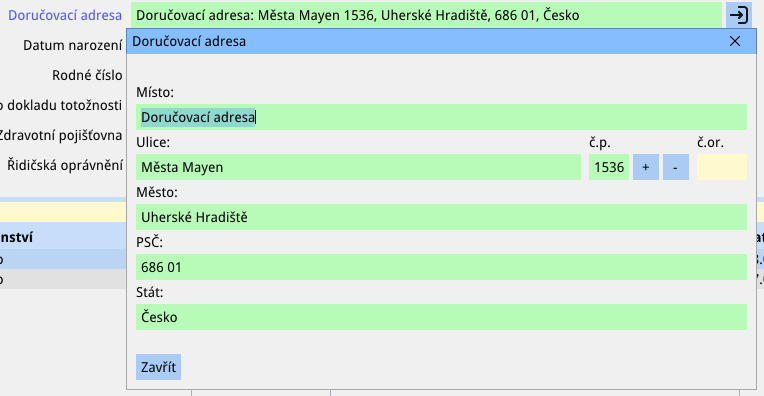 - „Doručovací adresa: Města Mayen 1536, Uherské Hradiště, 686 01, Česko“ nebo s vynecháním některých údajů: