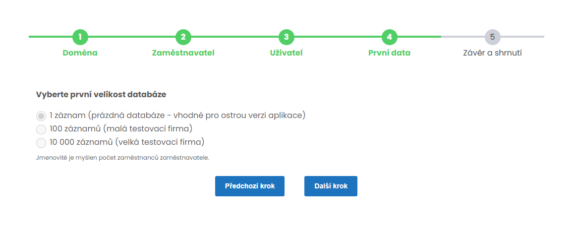 - 1 záznam, tj. čistá instalace připravená pro ostrý provoz;