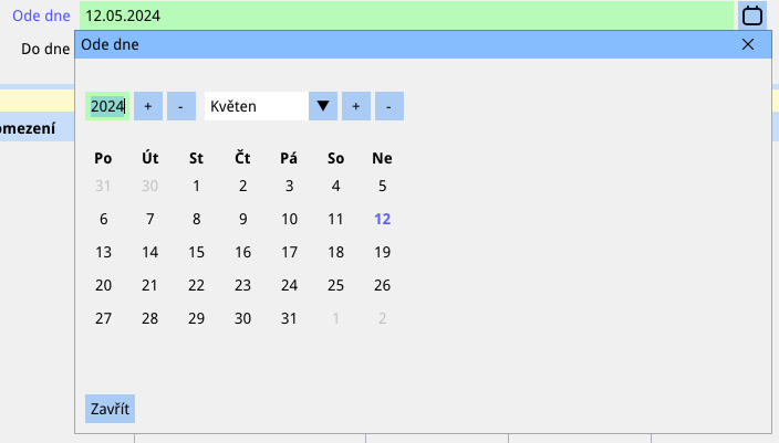 Datum je možné také zvolit výběrem v kalendáři, viz obrázek: