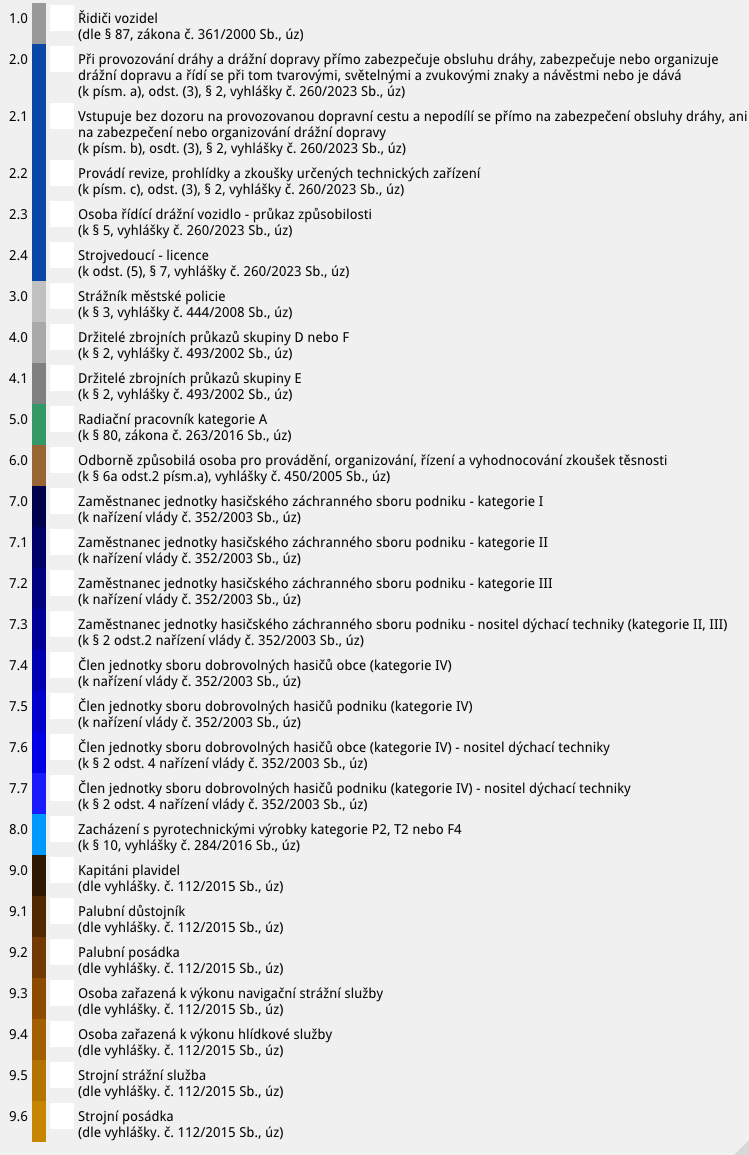 • vyhláška č. 260/2023 Sb., („zaměstnanci na drahách“);