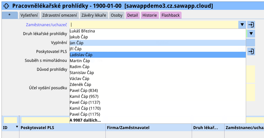 Pokud však záznamů existuje značné množství (v tomto případě 10 000 zaměstnanců, kdy někteří mají stejné jméno), může být obtížné, zvolit toho správného. Pro tyto případy je výhodné použít funkci: „Přenesení záznamu.“