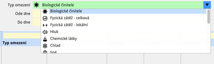 Typ omezení [Pracovnělékařské prohlídky – Zdravotní omezení]