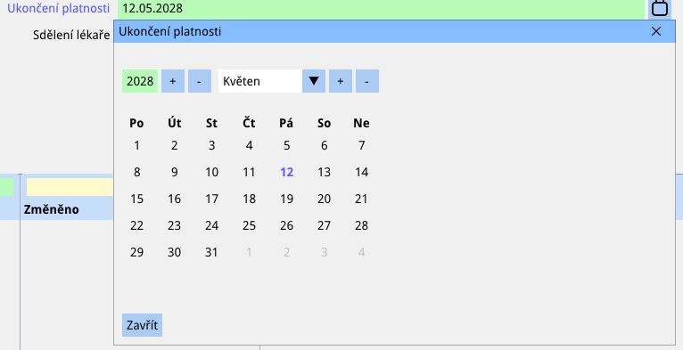 Položka Ukončení platnosti, v agendě: „Pracovnělékařské prohlídky“, na kartě: „Závěry lékaře“, slouží k uvedení data, ke kterému lékař rozhodl o ukončení platnosti lékařského posudku, učinil-li tak.